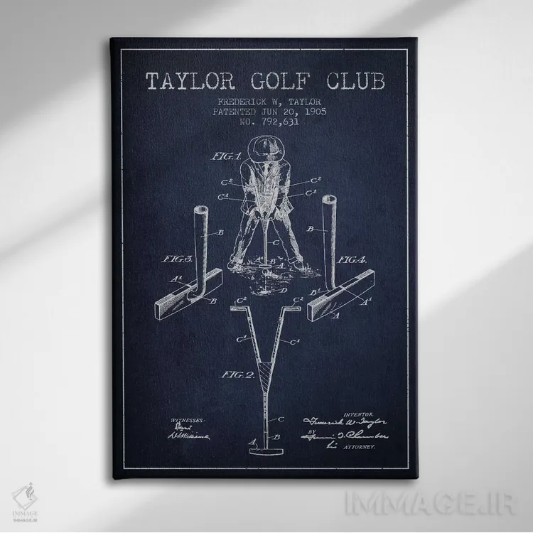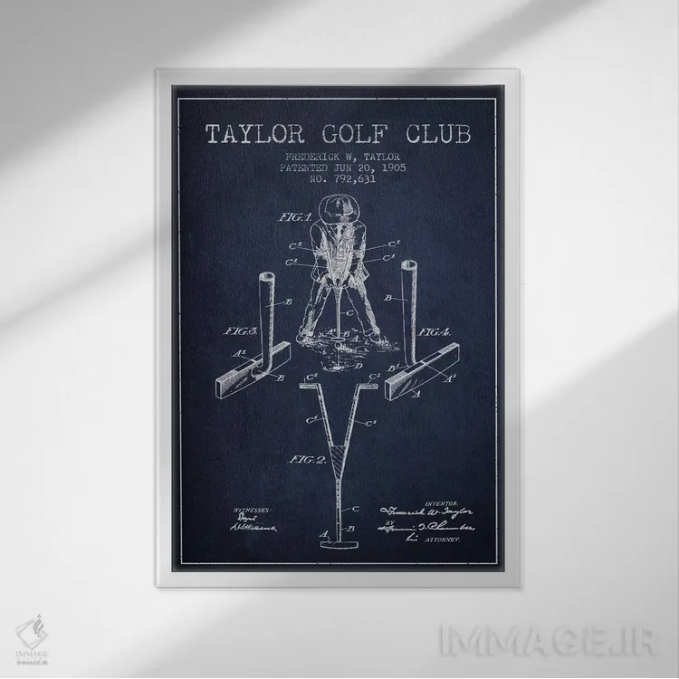 تابلو نقشهٔ ثبت اختراع چوب گلف تیلور (آبی سرمهای) اثر پیکسل کهنه (استودیو/نام هنری)