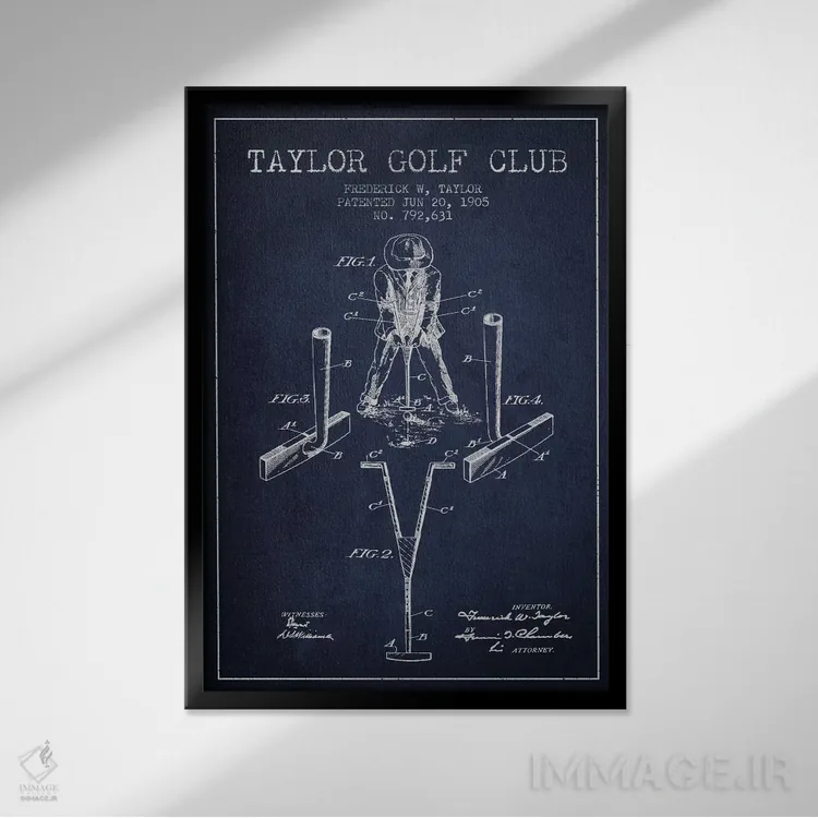 «نقشهٔ ثبت اختراع چوب گلف تیلور (آبی سرمهای)» اثرِ «پیکسل کهنه (استودیو/نام هنری)» یک انتخاب مطمئن و هماهنگپذیر برای کسانیست که میخواهند فضا شخصیت و داستان داشته باشد.