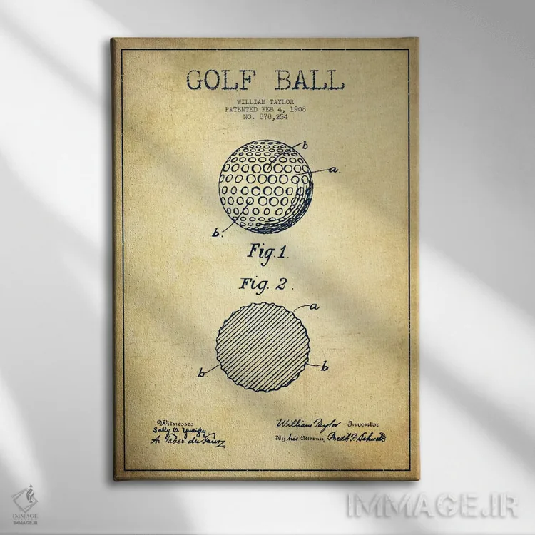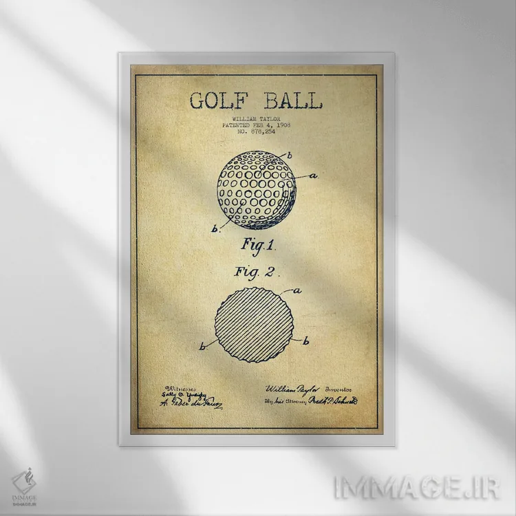 اگر دکور شما کلاسیک/رترو است، «نقشهٔ ثبت اختراع توپ گلف قدیمی» اثرِ «پیکسل کهنه (استودیو/نام هنری)» با سبک هنری کاملاًً مینشیند.
