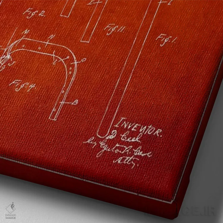 تابلو نقشهٔ ثبت اختراع چوب لاکروس (قرمز) اثر پیکسل کهنه (استودیو/نام هنری)