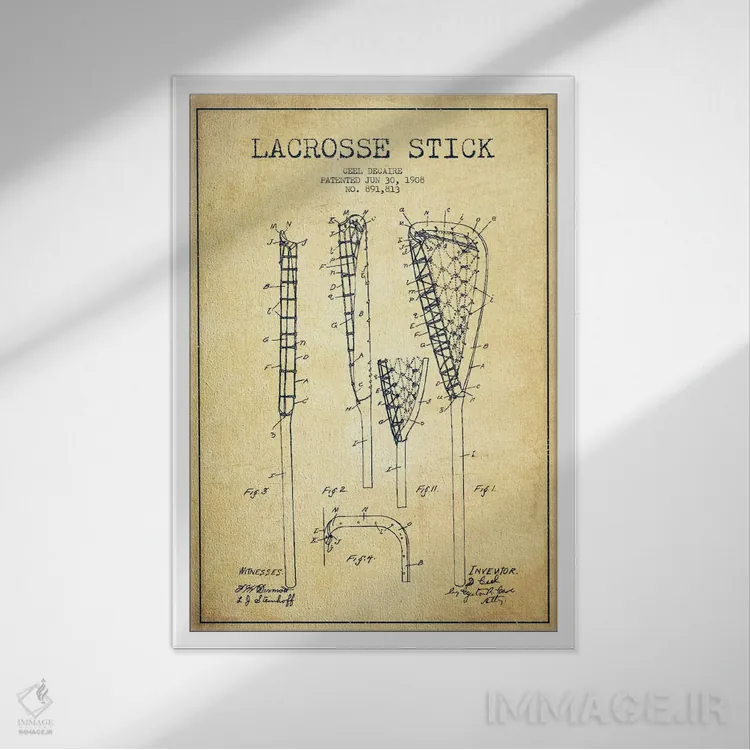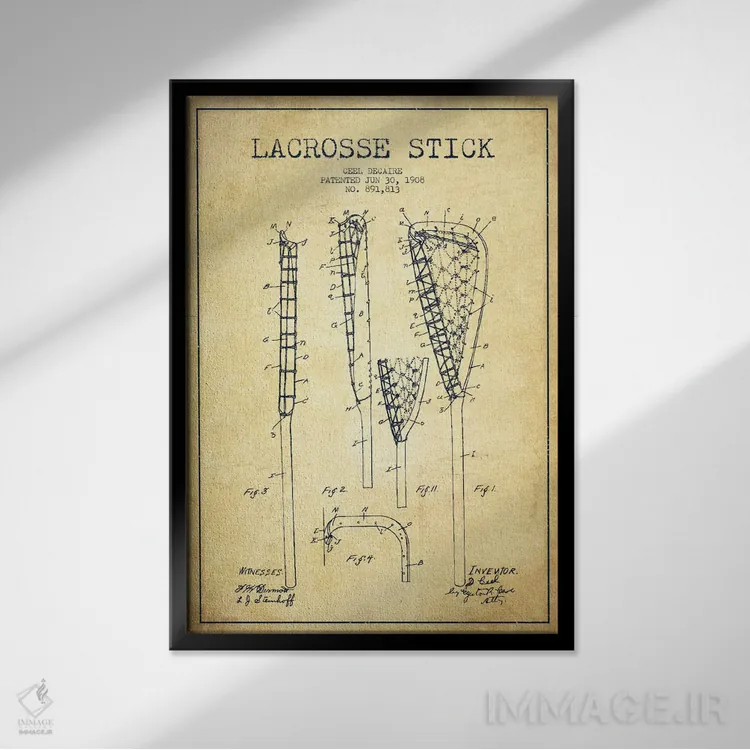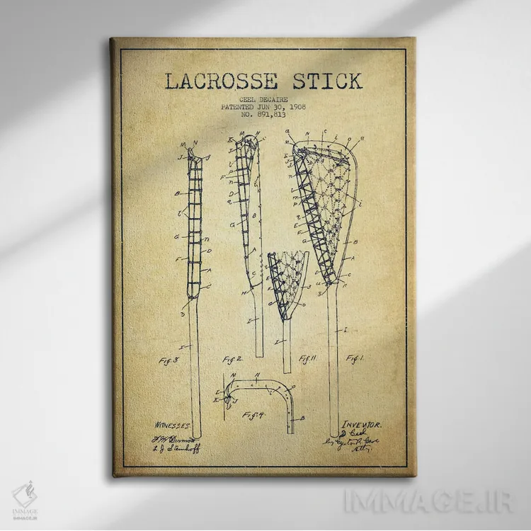 تابلو دکوراتیوِ «نقشهٔ ثبت اختراع قدیمی چوب لاکروس»؛ مناسب برای فضاهایی با چوب تیره، چراغهای گرم و اکسسوریهای کلاسیک اثرِ «پیکسل کهنه (استودیو/نام هنری)».