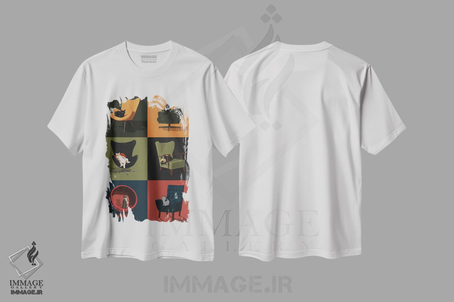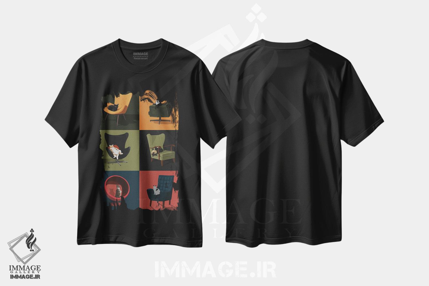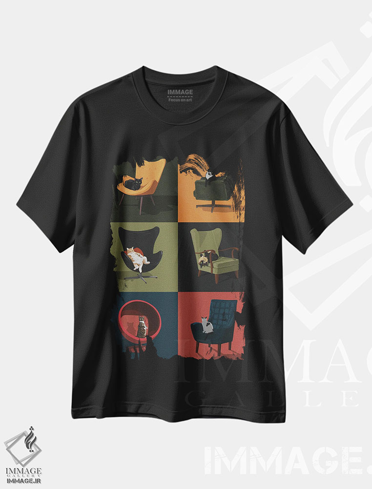 تیشرت طرح دار گربه ها روی صندلی ها اثر آرت کت ایلاستریتد