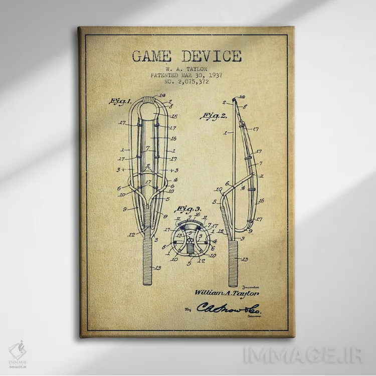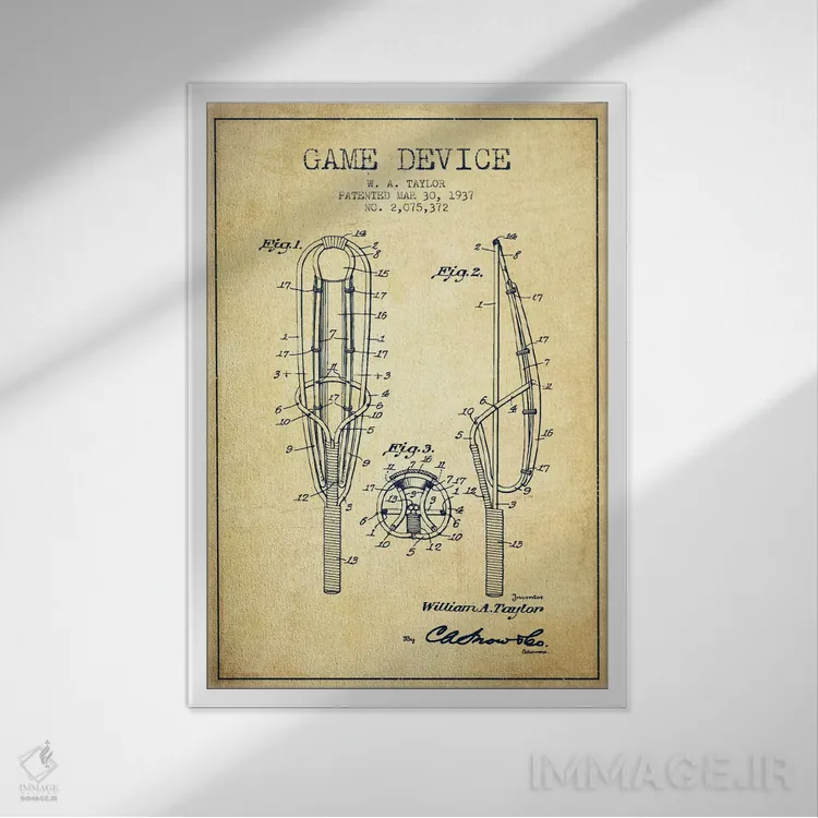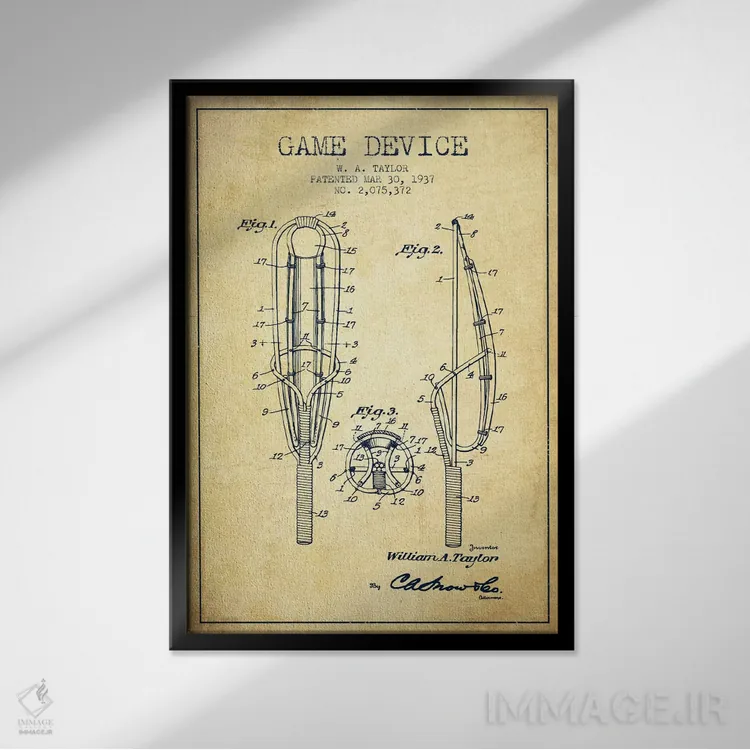 تابلو نقشهٔ ثبت اختراع قدیمی دستگاه بازی اثر پیکسل کهنه (استودیو/نام هنری)
