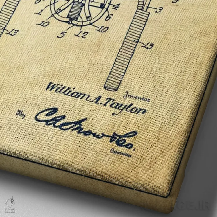 تابلو نقشهٔ ثبت اختراع قدیمی دستگاه بازی اثر پیکسل کهنه (استودیو/نام هنری) - نمای نزدیک بافت بوم