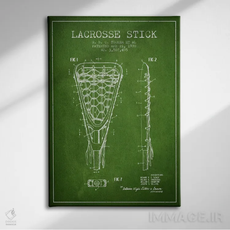 در «نقشهٔ ثبت اختراع چوب لاکروس (سبز)» اثرِ «پیکسل کهنه (استودیو/نام هنری)»، رنگها و فرمها یادآور پوسترهای قدیمیاند؛ انتخابی جذاب برای کافهاستایل و دکورهای شهری.