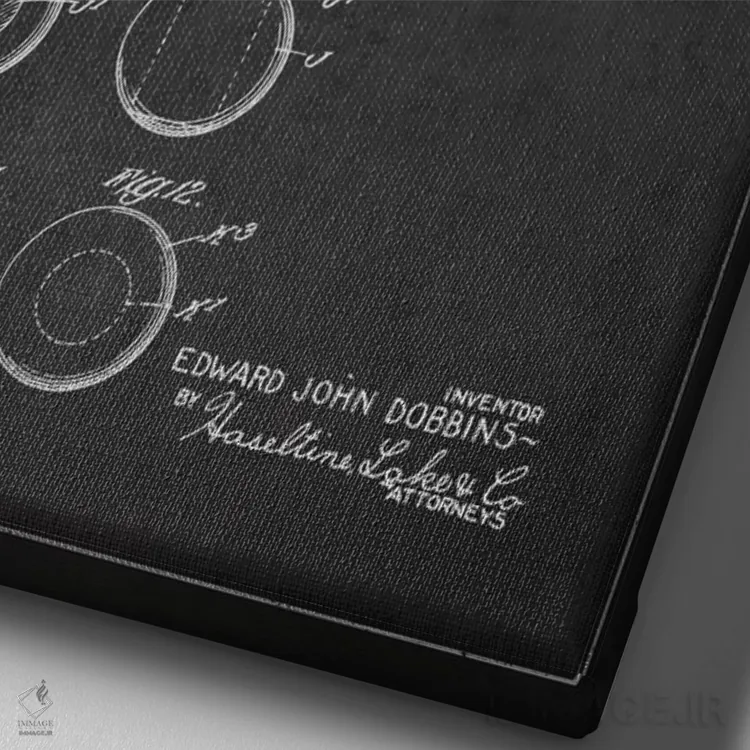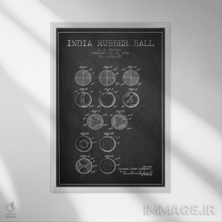 تابلو نقشهٔ ثبت اختراع توپ لاستیکی هندی (زغالی) اثر پیکسل کهنه (استودیو/نام هنری)