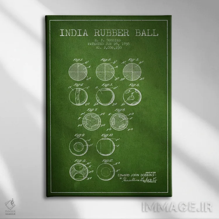 تابلو نقشهٔ ثبت اختراع توپ لاستیکی هندی (سبز) اثر پیکسل کهنه (استودیو/نام هنری)