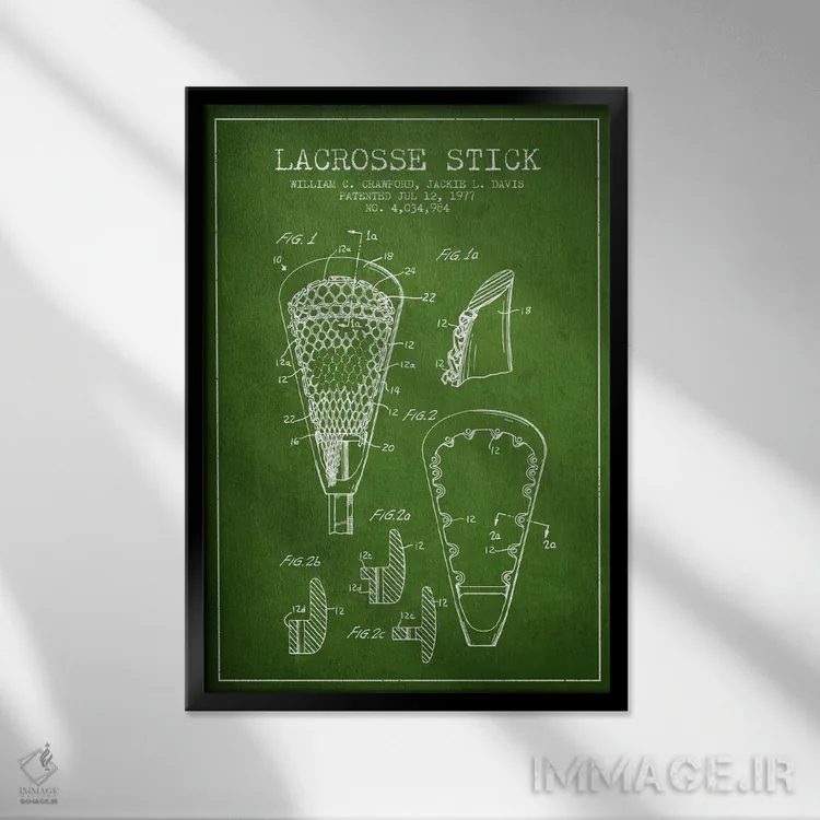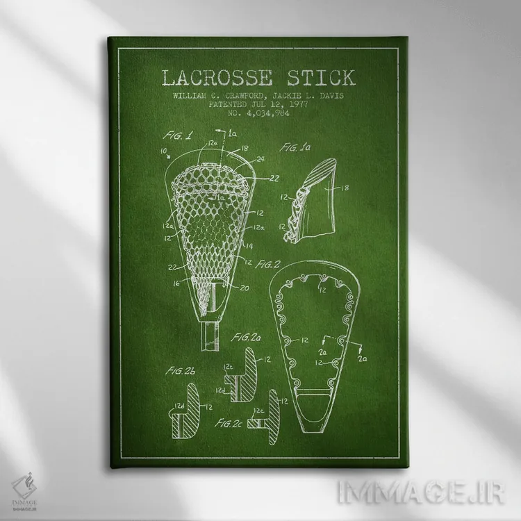 در «نقشهٔ ثبت اختراع چوب لاکروس (سبز)» اثرِ «پیکسل کهنه (استودیو/نام هنری)»، موضوعِ این اثر با زبانِ رترو روایت میشود؛ هم خاص است هم دکورپذیر.