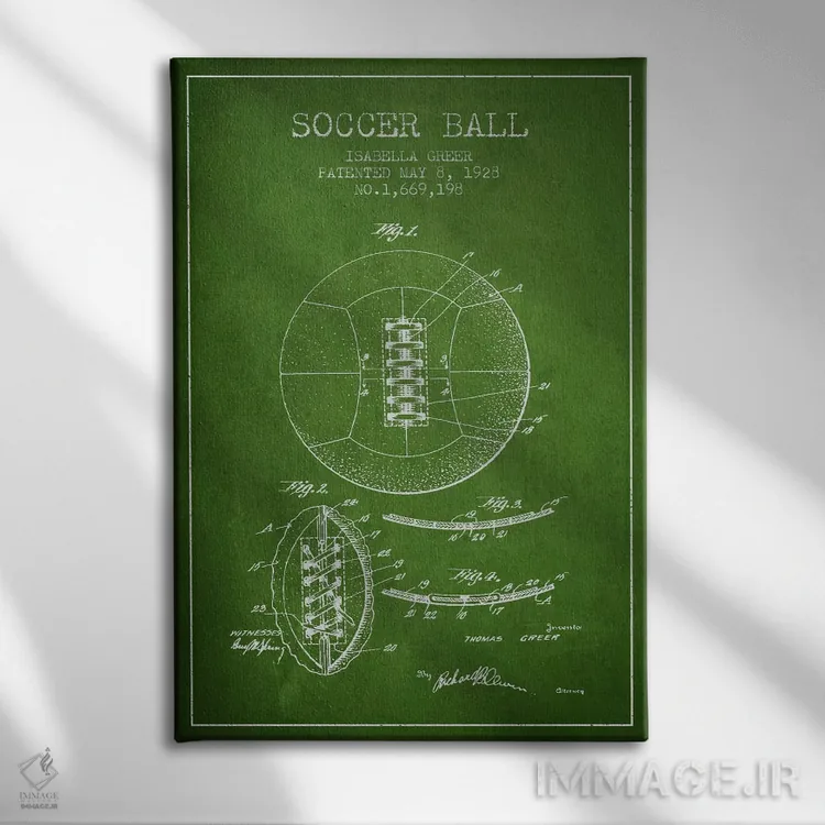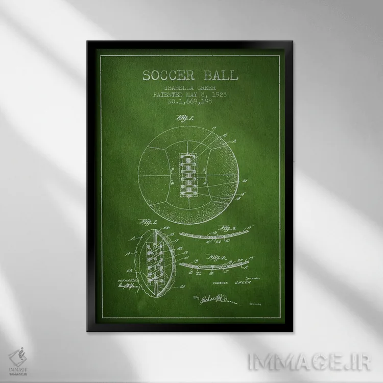 تابلو نقشهٔ ثبت اختراع توپ فوتبال (سبز) اثر پیکسل کهنه (استودیو/نام هنری)