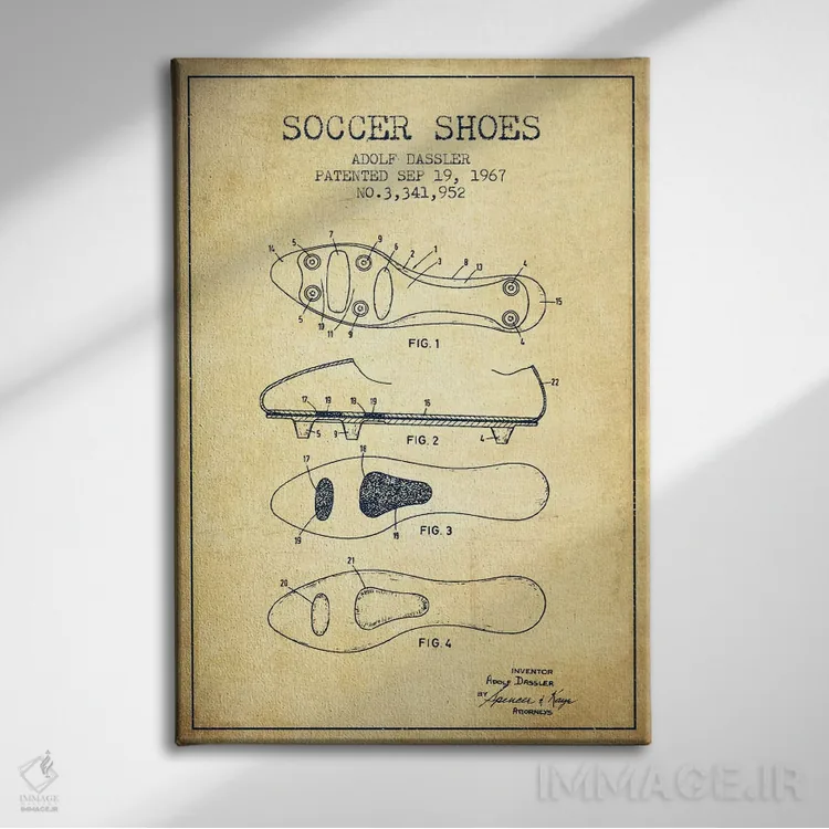 تابلو دکوراتیو نقشه ثبت اختراع قدیمی کفش فوتبال اثر پیکسل کهنه