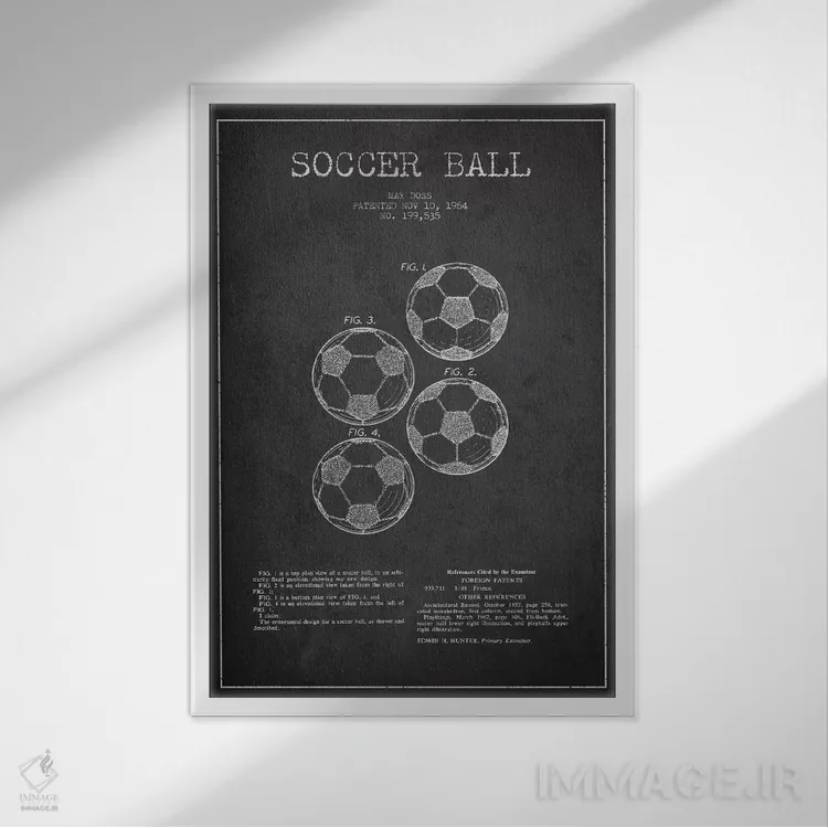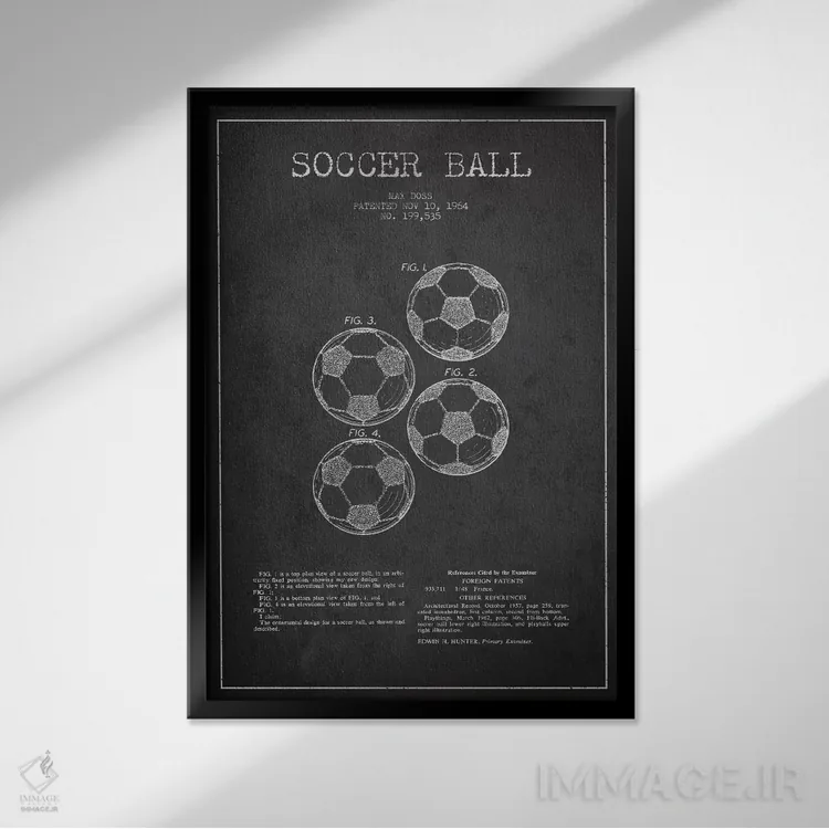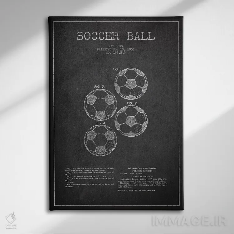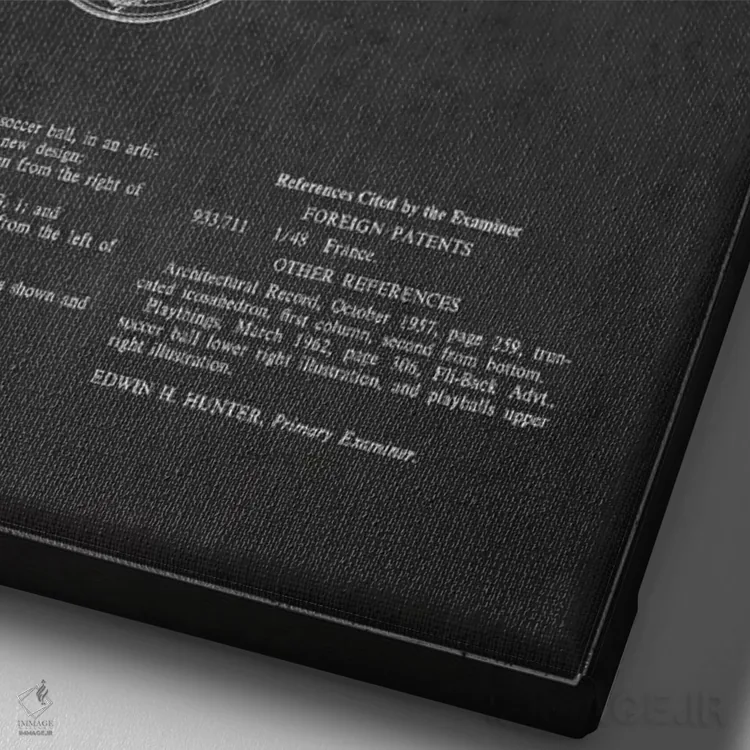 تابلو نقشهٔ ثبت اختراع توپ فوتبال (زغالی) اثر پیکسل کهنه (استودیو/نام هنری)