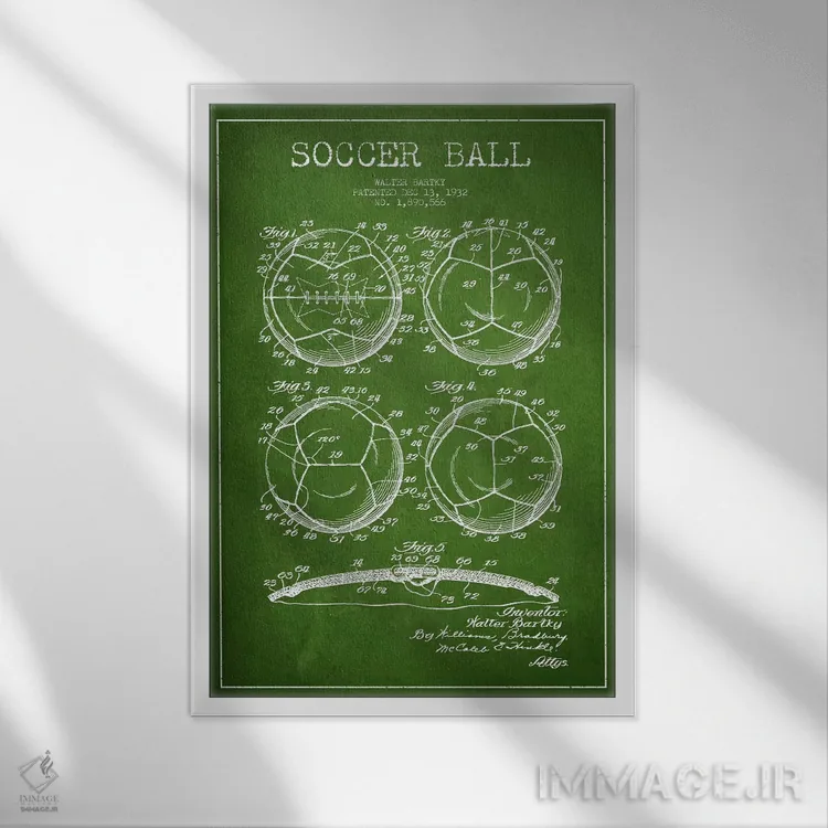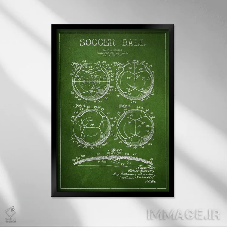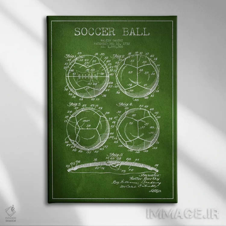 تابلو نقشهٔ ثبت اختراع توپ فوتبال بارتکی (سبز) اثر پیکسل کهنه (استودیو/نام هنری)