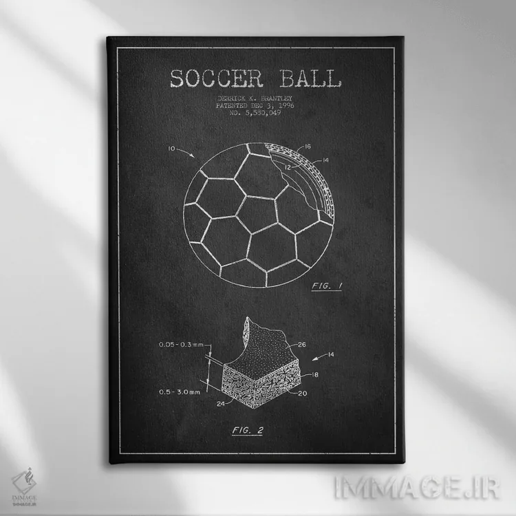 اگر دکور شما کلاسیک/رترو است، «نقشهٔ ثبت اختراع توپ فوتبال برانتلی (زغالی)» اثرِ «پیکسل کهنه (استودیو/نام هنری)» با سبک هنری کاملاًً مینشیند.