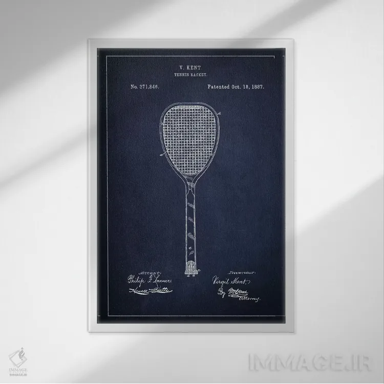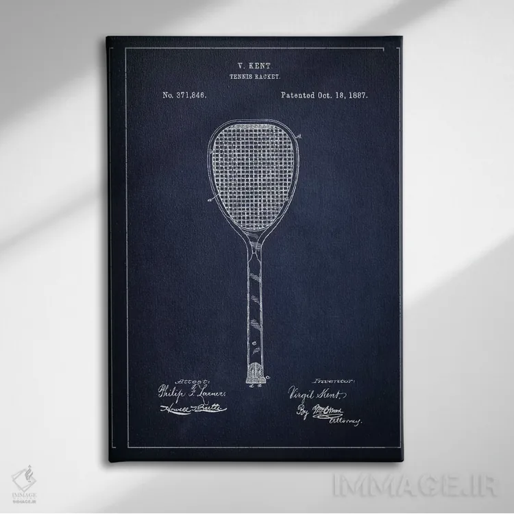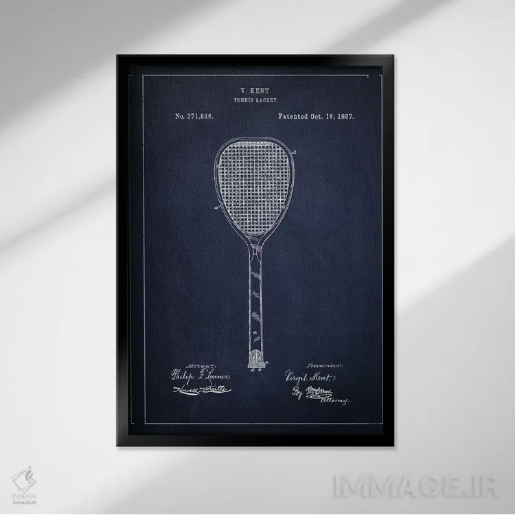 تابلو نقشهٔ ثبت اختراع راکت تنیس (آبی نفتی) اثر پیکسل کهنه (استودیو/نام هنری)