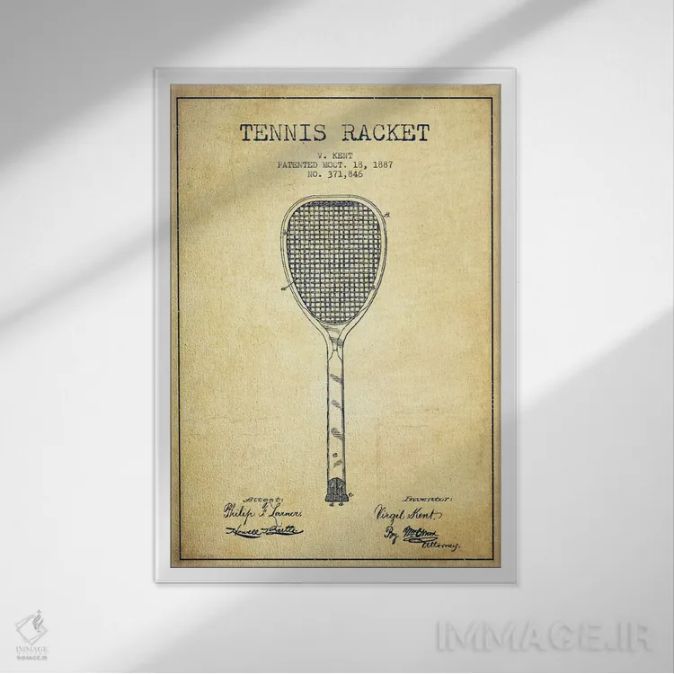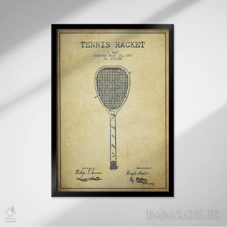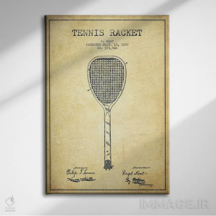 تابلو نقشهٔ ثبت اختراع قدیمی راکت تنیس اثر پیکسل کهنه (استودیو/نام هنری)