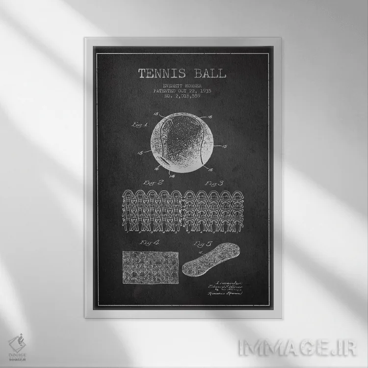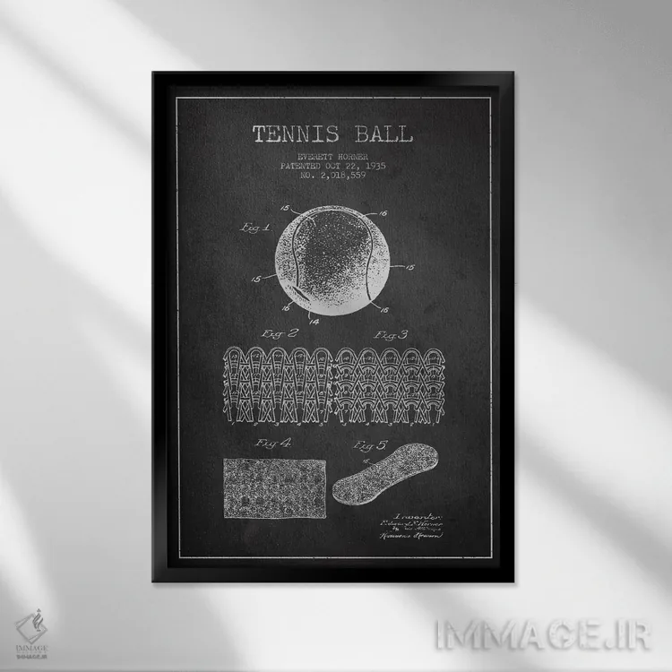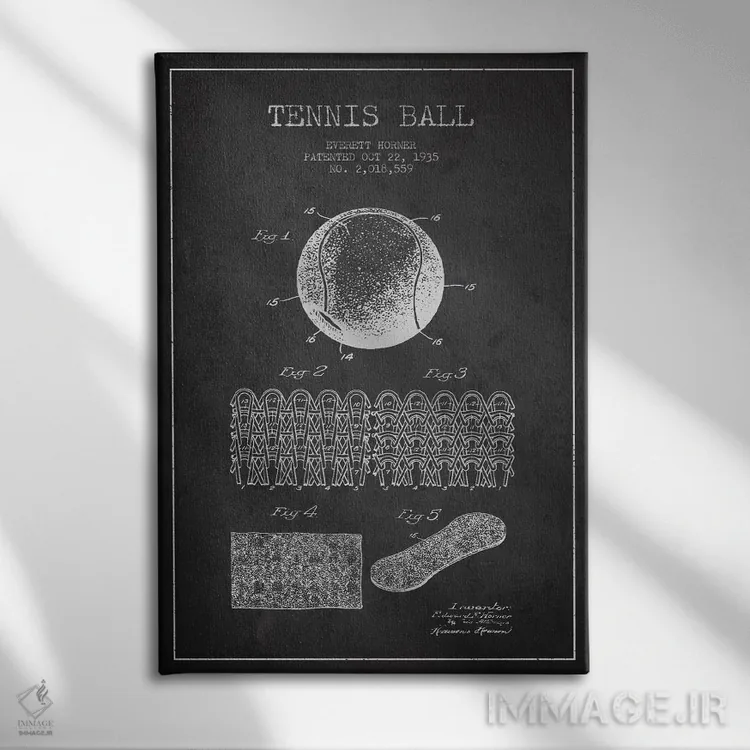 تابلو نقشهٔ ثبت اختراع توپ تنیس (زغالی) اثر پیکسل کهنه (استودیو/نام هنری)