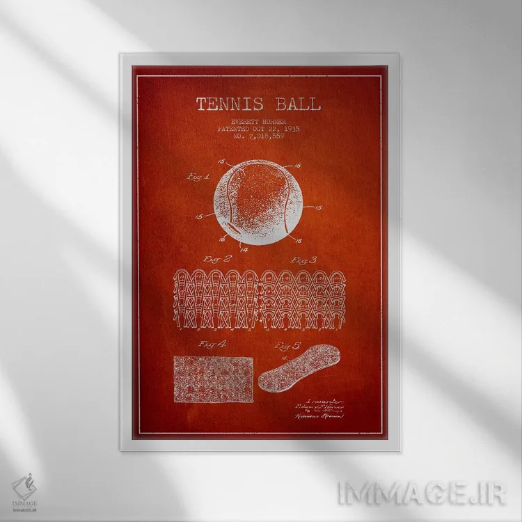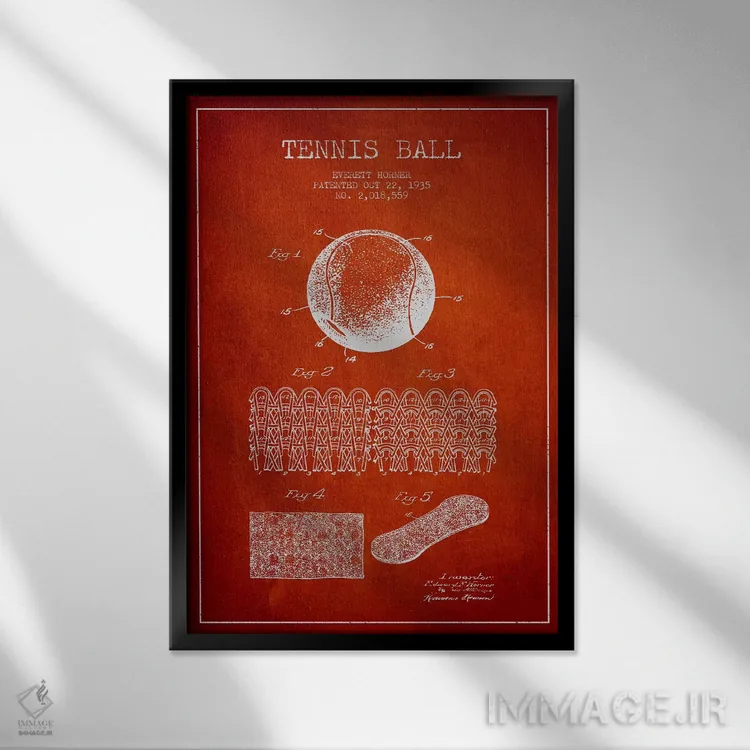 اگر دکور شما کلاسیک/رترو است، «نقشهٔ ثبت اختراع توپ تنیس (قرمز)» اثرِ «پیکسل کهنه (استودیو/نام هنری)» با سبک هنری کاملاًً مینشیند.