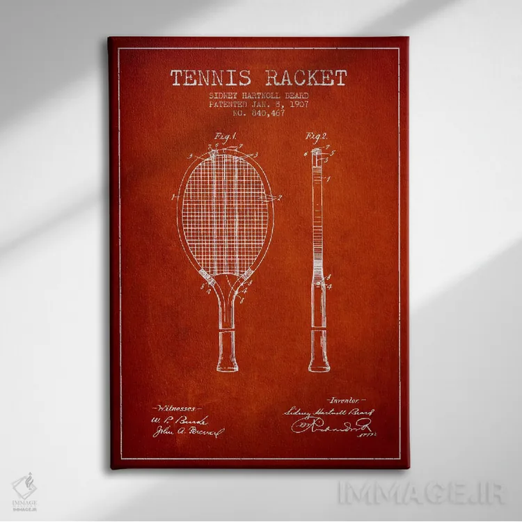 تابلو نقشهٔ ثبت اختراع راکت تنیس (قرمز) اثر پیکسل کهنه (استودیو/نام هنری)