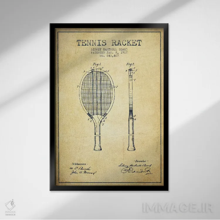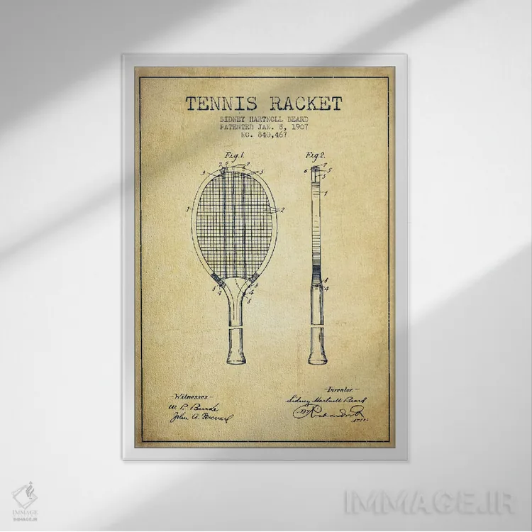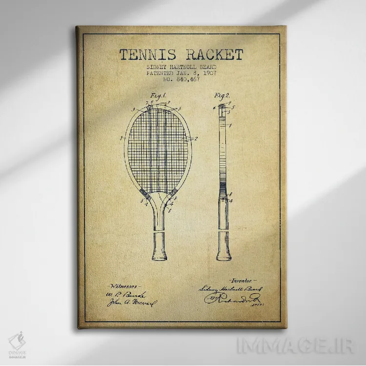 تابلو نقشهٔ ثبت اختراع قدیمی راکت تنیس اثر پیکسل کهنه (استودیو/نام هنری)