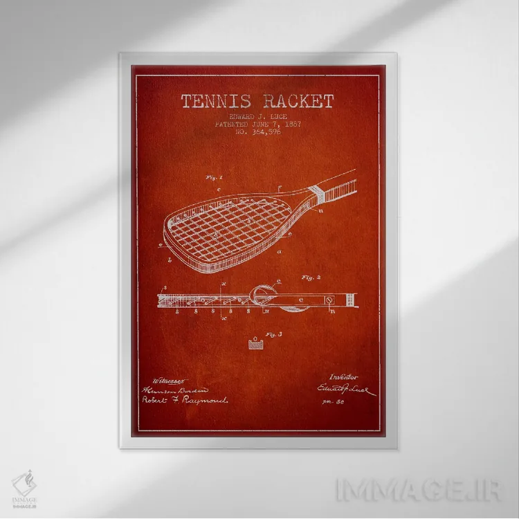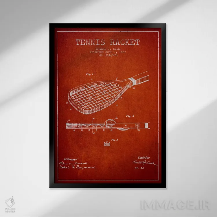 تابلو نقشهٔ ثبت اختراع راکت تنیس (قرمز) اثر پیکسل کهنه (استودیو/نام هنری)
