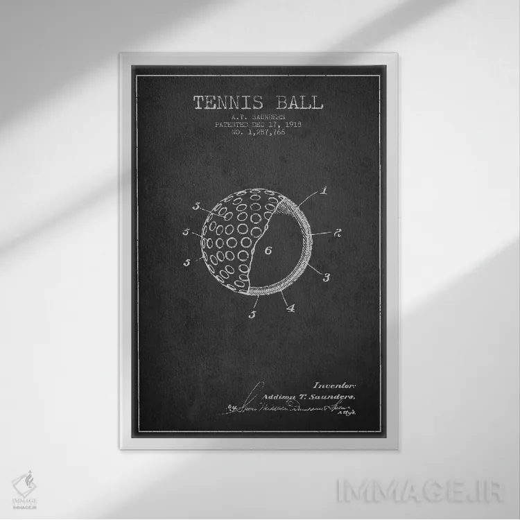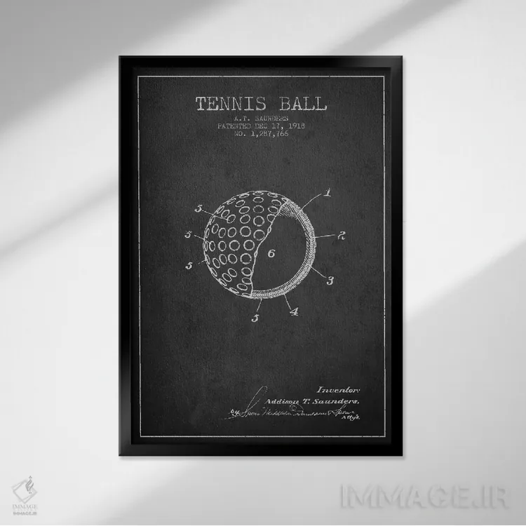 تابلو نقشهٔ ثبت اختراع توپ تنیس (زغالی) اثر پیکسل کهنه (استودیو/نام هنری)