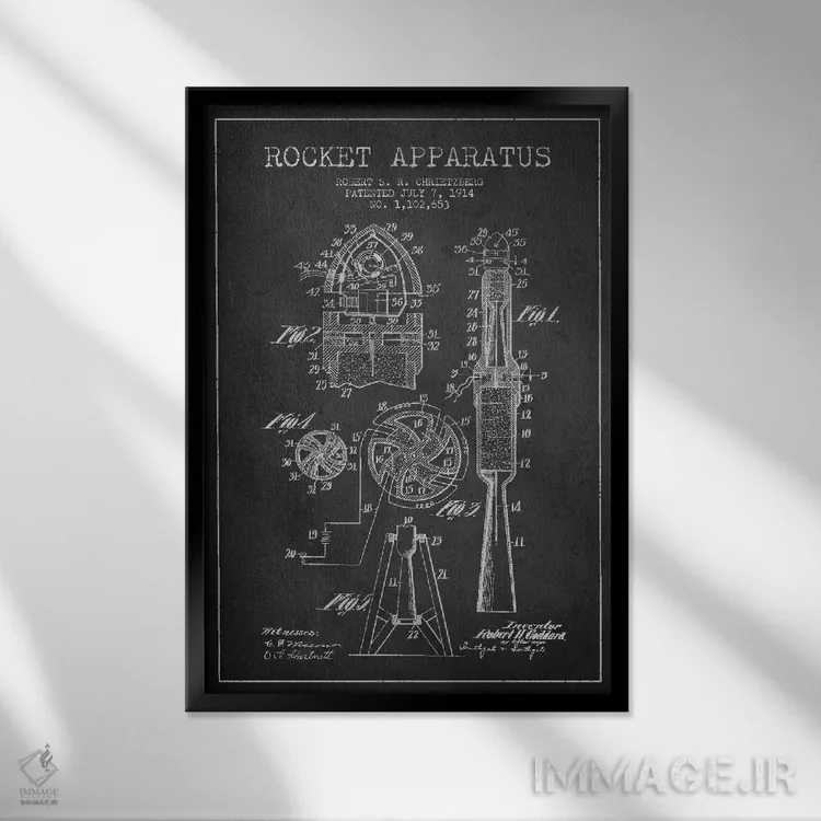 «نقشه ثبت اختراع دستگاه موشکی (ذغالی)» اثرِ «پیکسل کهنه (استودیو/نام هنری)» با حالوهوای هنری، حس نوستالژیِ کنترلشدهای به فضا میدهد؛ مناسب برای چیدمانهای رترو و کلاسیک.