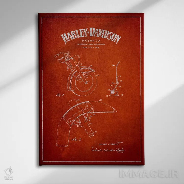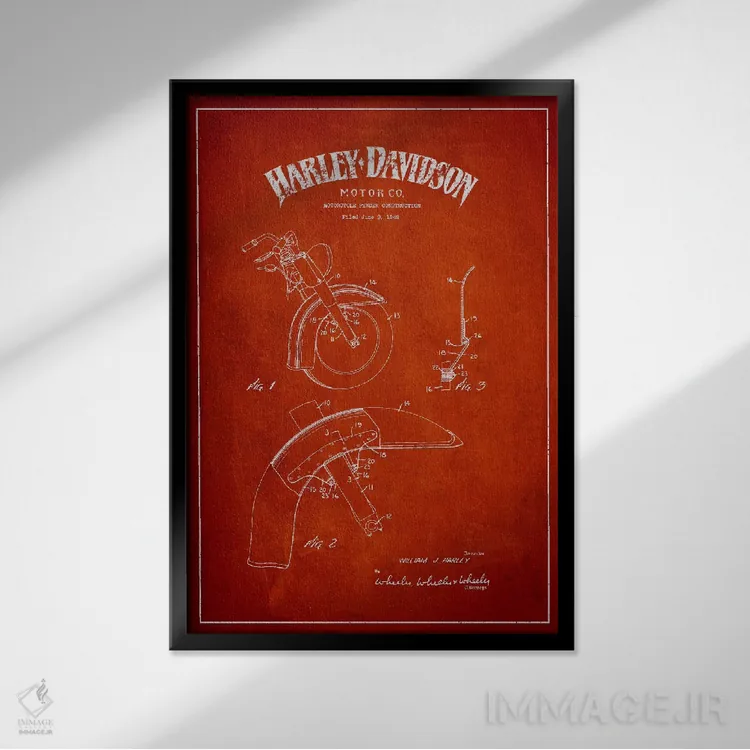 تابلو نقشهٔ درخواست ثبت پتنت گلگیر موتورسیکلت هارلی-دیویدسون (قرمز) اثر پیکسل کهنه (استودیو/نام هنری)