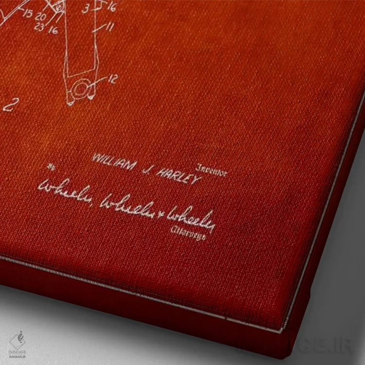 تابلو نقشهٔ درخواست ثبت پتنت گلگیر موتورسیکلت هارلی-دیویدسون (قرمز) اثر پیکسل کهنه (استودیو/نام هنری) - نمای نزدیک بافت بوم