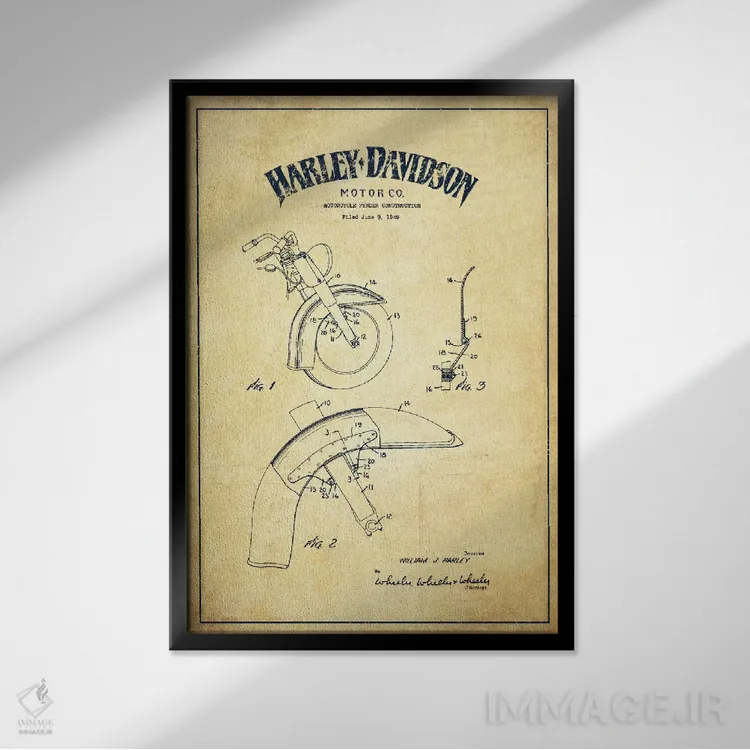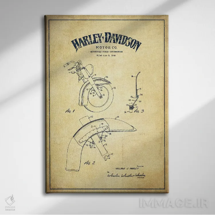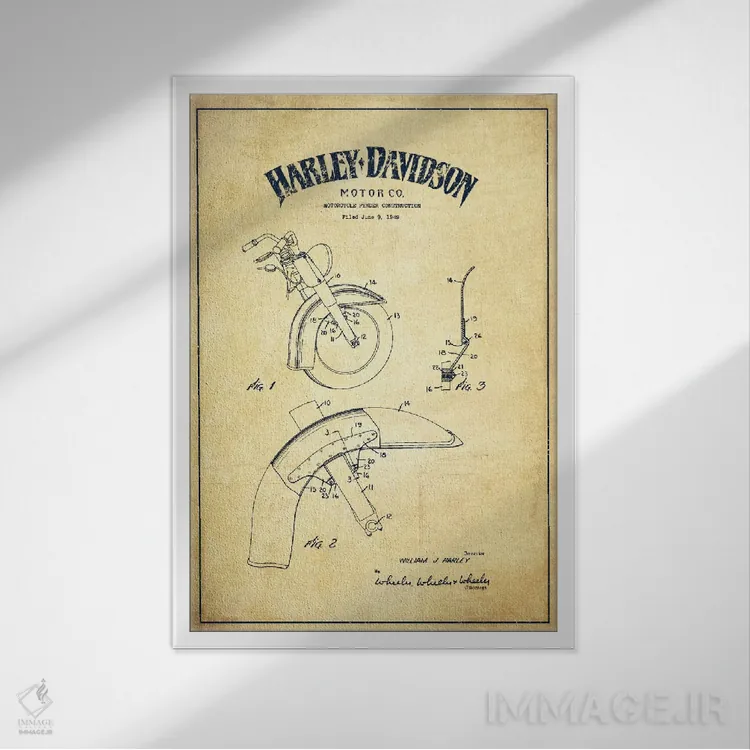 تابلو نقشهٔ درخواست ثبت پتنت گلگیر موتورسیکلت هارلی-دیویدسون (کرم کلاسیک) اثر پیکسل کهنه (استودیو/نام هنری)
