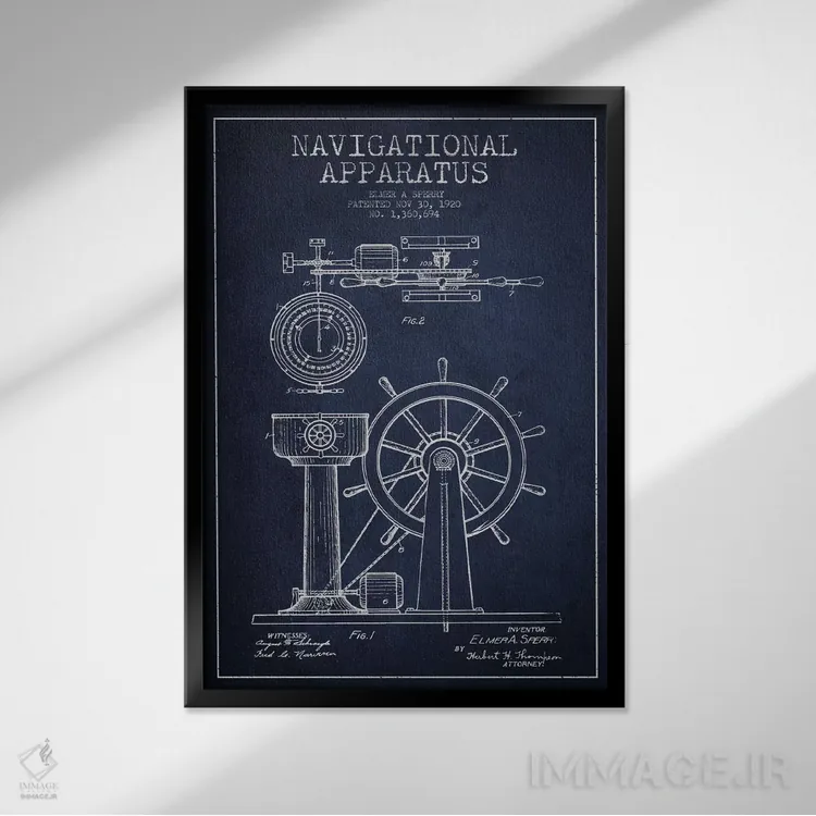 در «نقشهٔ ثبت اختراع دستگاه ناوبری (سرمهای)» اثرِ «پیکسل کهنه (استودیو/نام هنری)»، موضوعِ این اثر با زبانِ رترو روایت میشود؛ هم خاص است هم دکورپذیر.