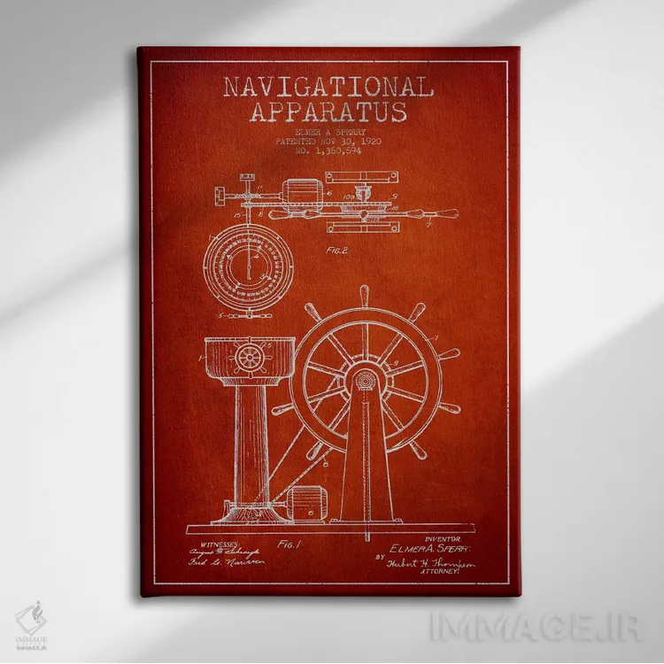 تابلو نقشهٔ ثبت اختراع دستگاه ناوبری (قرمز) اثر پیکسل کهنه (استودیو/نام هنری)