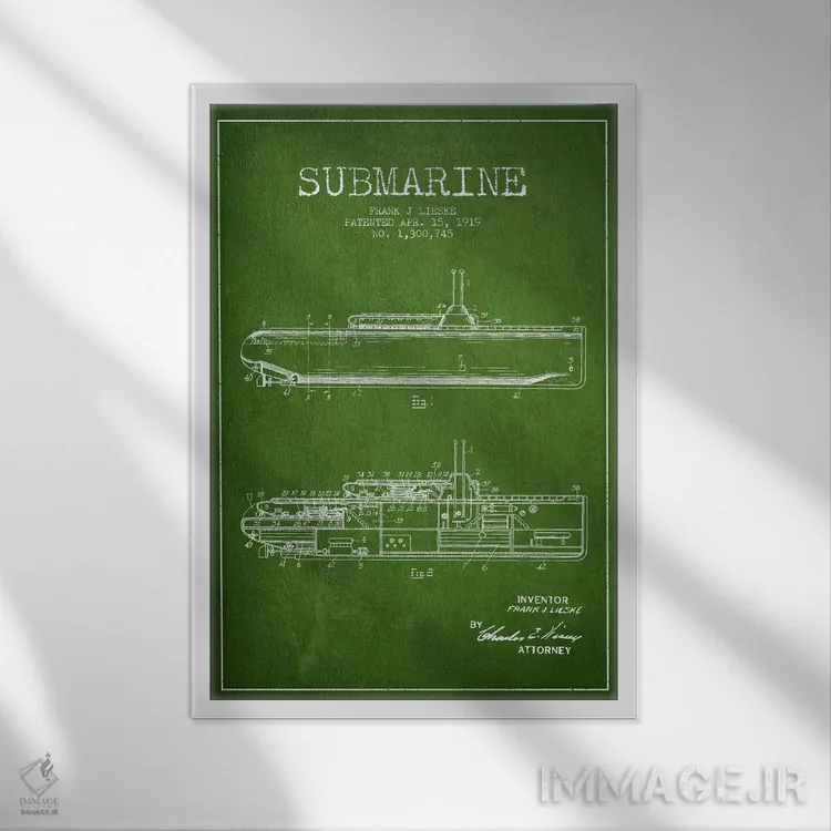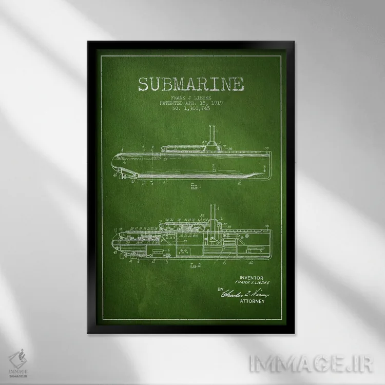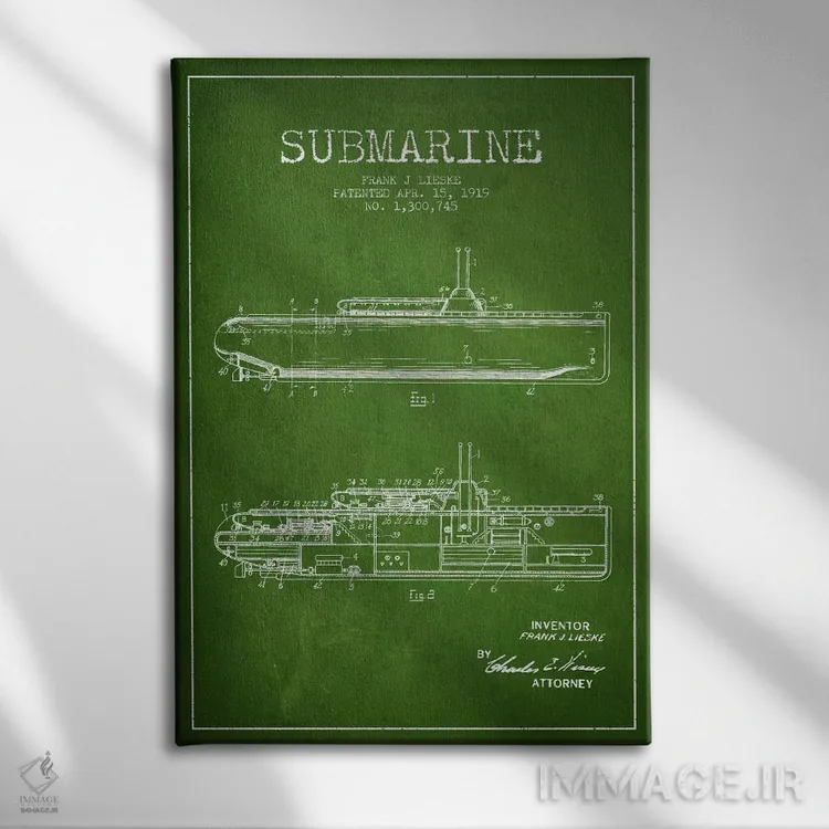 تابلو نقشهٔ ثبت اختراع زیردریایی (سبز) اثر پیکسل کهنه (استودیو/نام هنری)