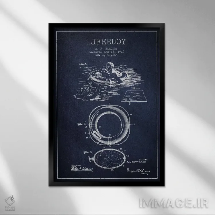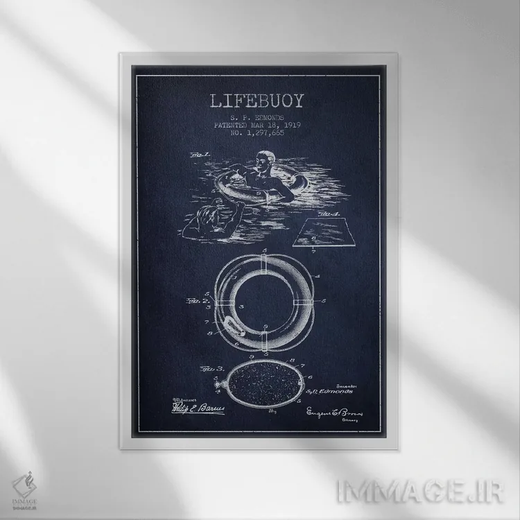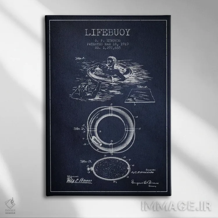 تابلو نقشهٔ ثبت اختراع حلقه نجات (سرمهای) اثر پیکسل کهنه (استودیو/نام هنری)