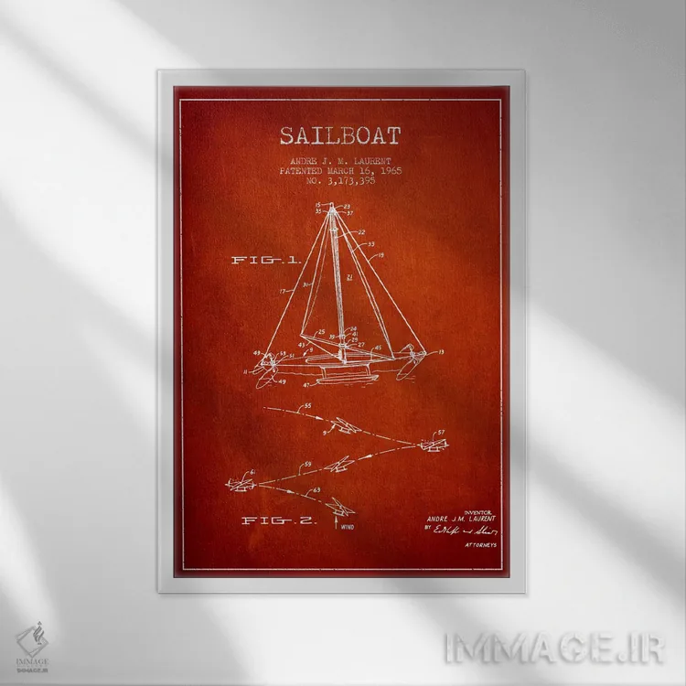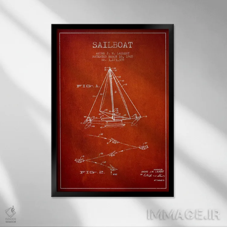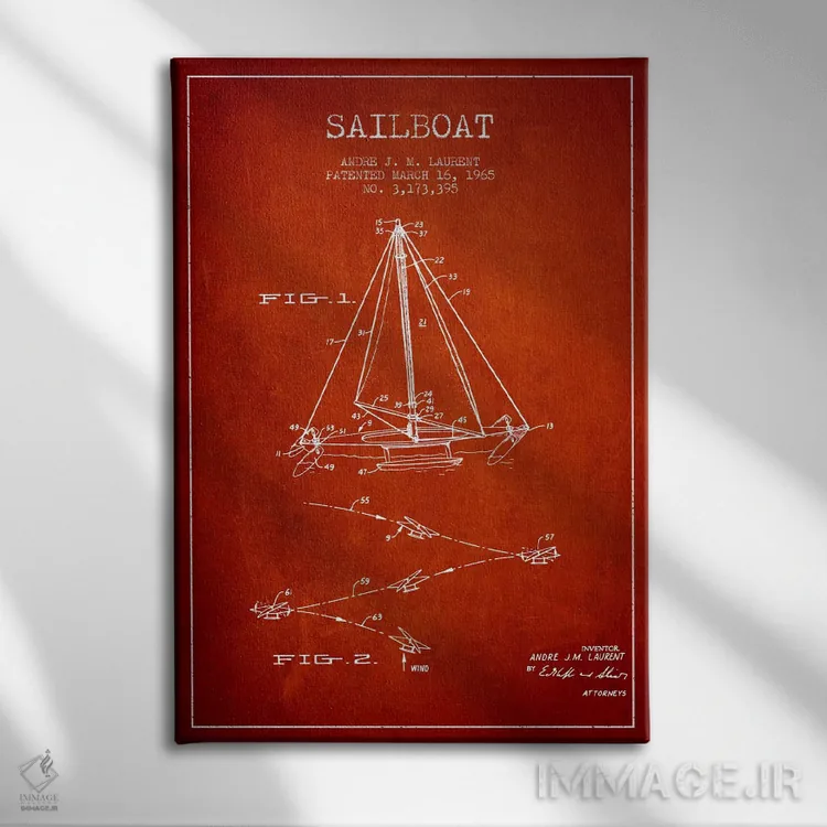 تابلو نقشهٔ ثبت اختراع قایق بادبانی دو سر (قرمز) اثر پیکسل کهنه (استودیو/نام هنری)