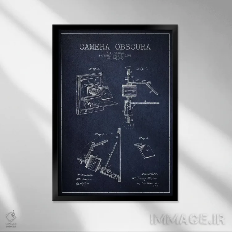 تابلو نقشهٔ ثبت اختراع دوربین (سرمهای) اثر پیکسل کهنه (استودیو/نام هنری)
