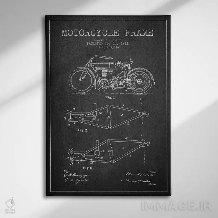 تابلو طرح ثبت اختراع شاسی موتورسیکلت آلن ای. هورتون (زغالی) اثر پیکسل کهنه (استودیو/نام هنری)