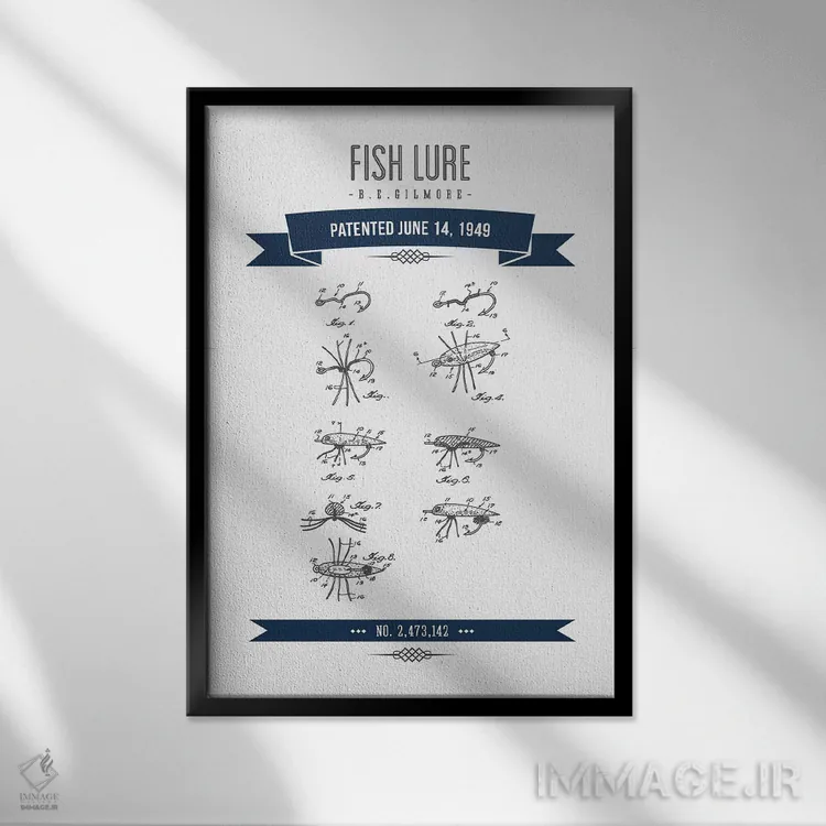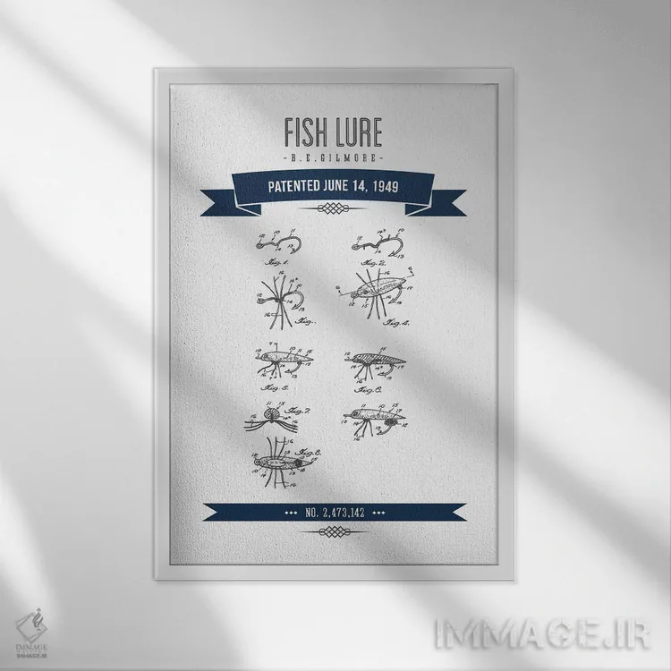 تابلو طرح ثبت اختراع طعمه ماهیگیری بی. ای. گیلمور (سرمهای) اثر پیکسل کهنه (استودیو/نام هنری)