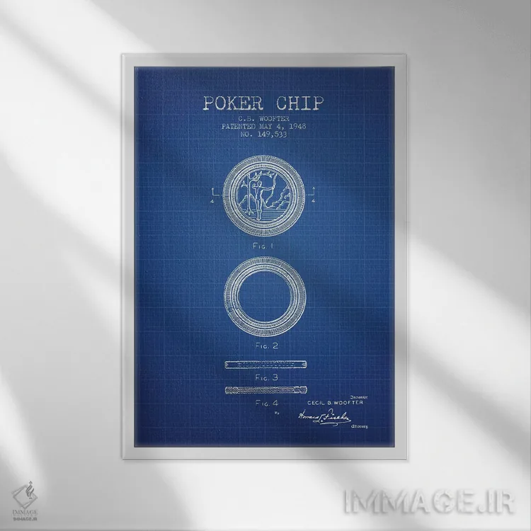 تابلو دکوراتیوِ «طرح اختراع چیپ پوکر سی.بی. ووفر (شبکه آبی)»؛ مناسب برای فضاهایی با چوب تیره، چراغهای گرم و اکسسوریهای کلاسیک اثرِ «پیکسل کهنه (استودیو/نام هنری)».