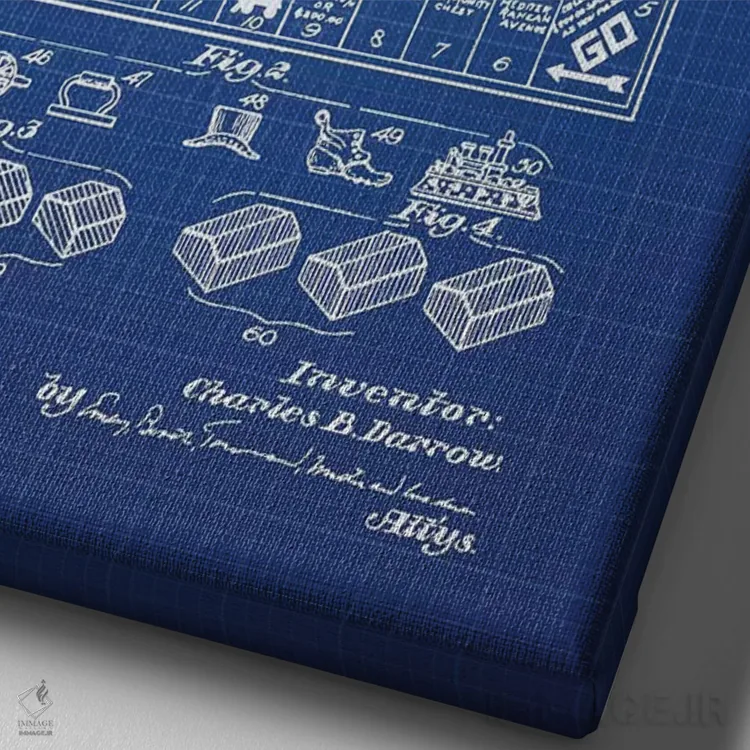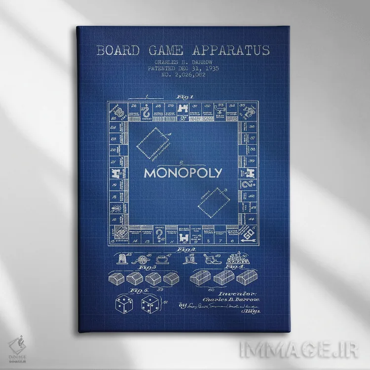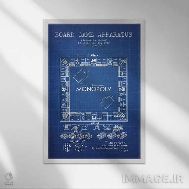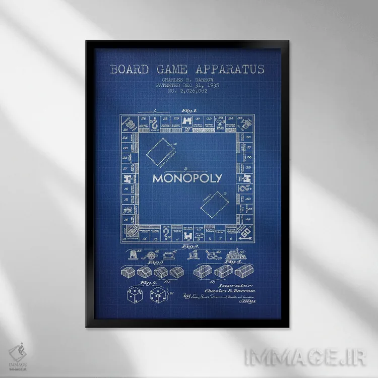 اگر دکور شما کلاسیک/رترو است، «طرح اختراع بازی مونوپولی چارلز بی. دارو (شبکه آبی)» اثرِ «پیکسل کهنه (استودیو/نام هنری)» با سبک هنری کاملاًً مینشیند.