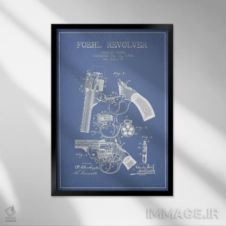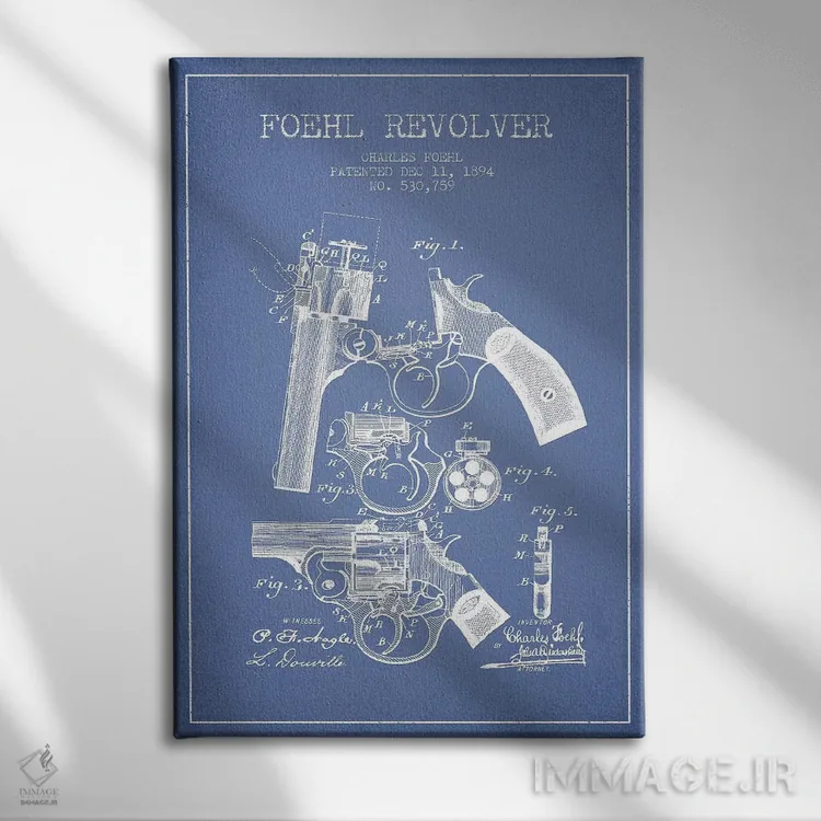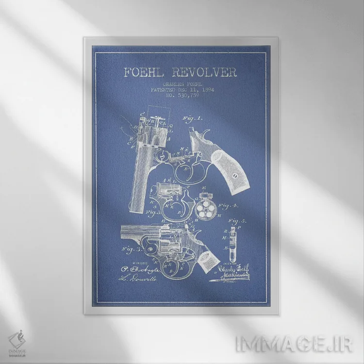 تابلو طرح اختراع هفتتیر چارلز فوئل (آبی روشن) اثر پیکسل کهنه (استودیو/نام هنری)