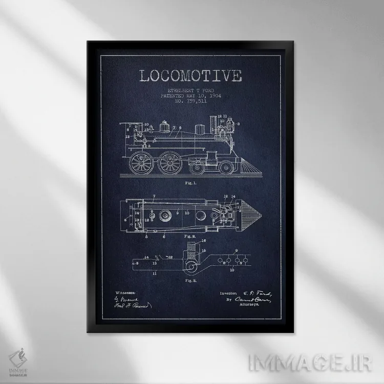 تابلو طرح الگو لوکوموتیو اتلبرت تی. فورد (آبی نفتی) اثر پیکسل کهنه (استودیو/نام هنری) - نمای قاب‌دار مشکی