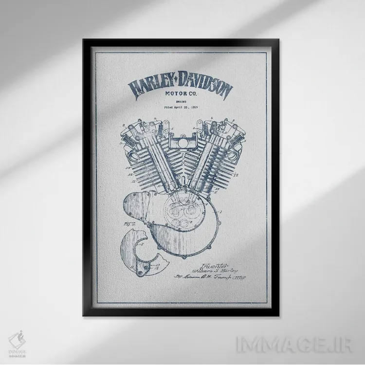 تابلو موتورسیکلت‌های هارلی-دیویدسون (جوهر) ۱ اثر پیکسل کهنه (استودیو/نام هنری) - نمای قاب‌دار سفید