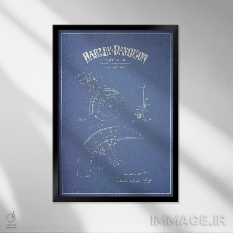 تابلو ساخت گلگیر موتورسیکلتهای هارلی-دیویدسون (آبی روشن) اثر پیکسل کهنه (استودیو/نام هنری)