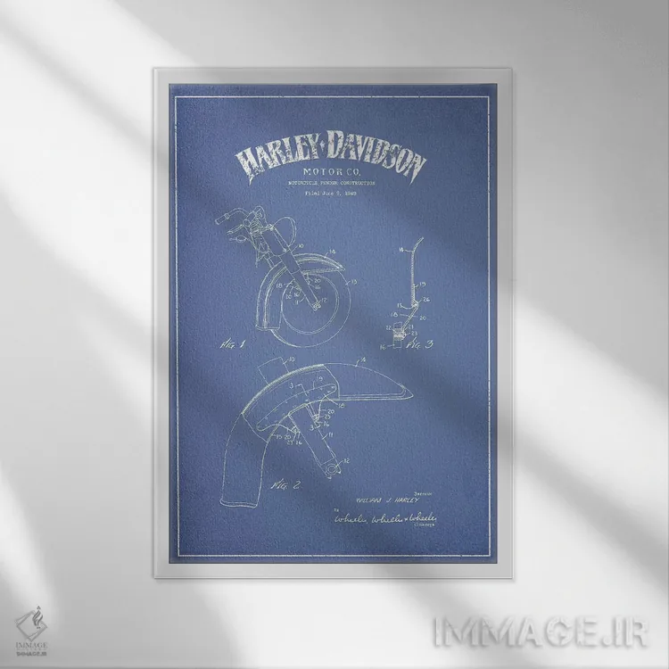 «ساخت گلگیر موتورسیکلتهای هارلی—دیویدسون (آبی روشن)» اثرِ «پیکسل کهنه (استودیو/نام هنری)» برای راهرو، ورودی یا دیوارهای کوچک هم گزینهی خوبیست؛ چون حسش فوری منتقل میشود.