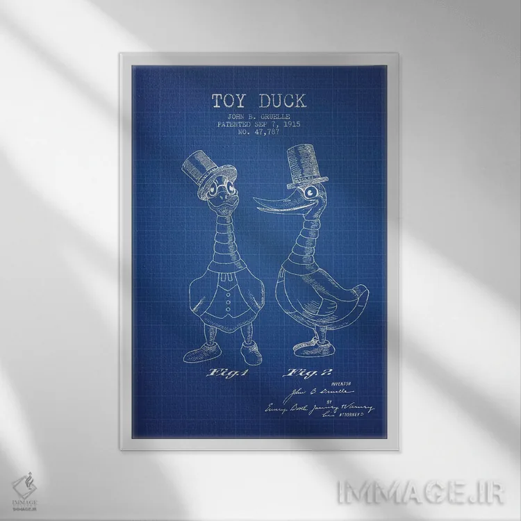 تابلو Male Patent Sketch (Blue Grid),طرح اختراع اردک اسباببازی نر جی.بی. گروئل (شبکه آبی) اثر پیکسل کهنه (استودیو/نام هنری)