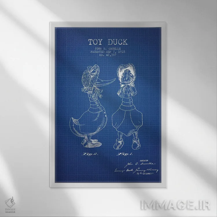 تابلو Female Patent Sketch (Blue Grid),طرح اختراع اردک اسباببازی ماده جی.بی. گروئل (شبکه آبی) اثر پیکسل کهنه (استودیو/نام هنری)