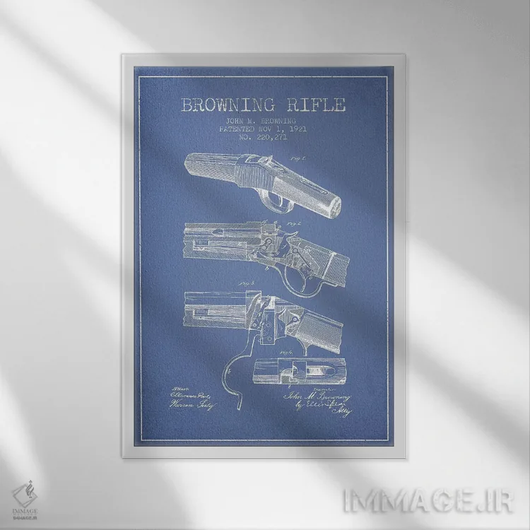 تابلو طرح پتنت تفنگ جان ام. براونینگ (آبی روشن) اثر پیکسل کهنه (استودیو/نام هنری)