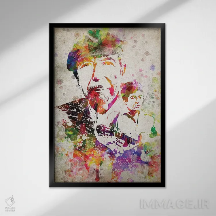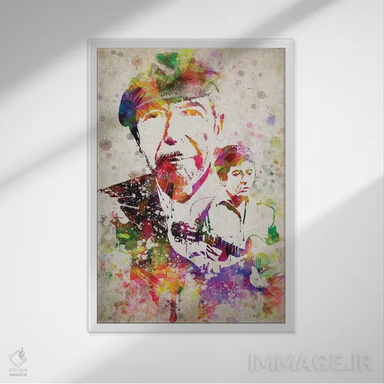 تابلو لئونارد کوهن (خواننده و شاعر) اثر پیکسل کهنه (استودیو/نام هنری) - نمای قاب‌دار سفید