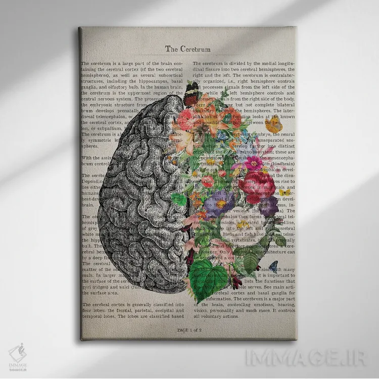 تابلو دکوراتیو چاپ هنری مغز با گل اثر پیکسل کهنه