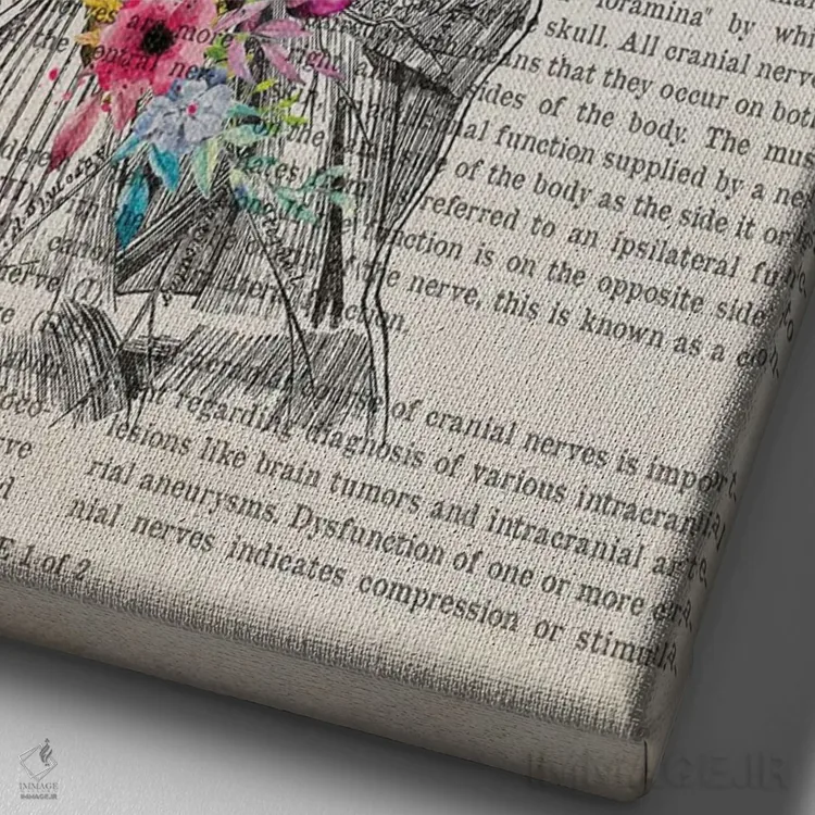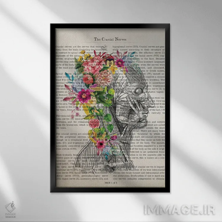 تابلو دکوراتیو چاپ آناتومی اعصاب جمجمه با گل اثر پیکسل کهنه